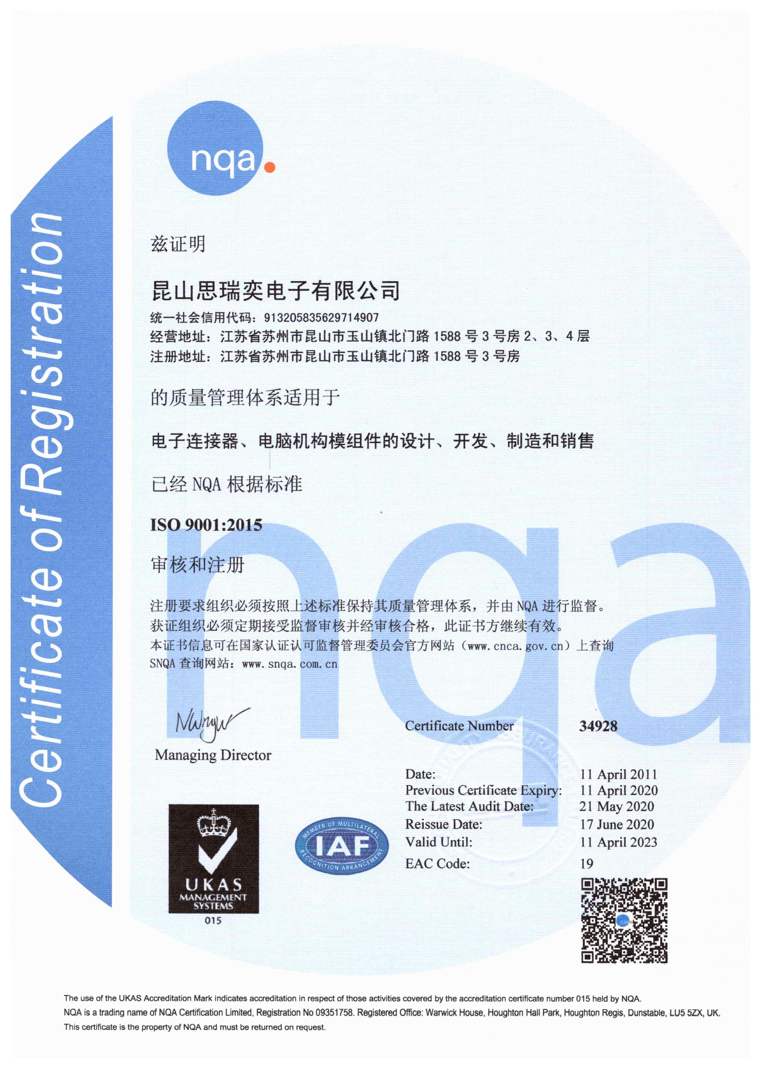 思瑞奕電子有限公司成立于2010年10月,注冊(cè)資金7500萬(wàn)人民幣,總部位于江蘇省昆山市,在重慶、江蘇東臺(tái)、江蘇太倉(cāng)設(shè)有分廠,公司于2011年通過ISO9001/ISO14001認(rèn)證,2013年通過高新技術(shù)企業(yè)和TS16949(IATF)體系認(rèn)定,2016年先后通過知識(shí)產(chǎn)權(quán)管理體系認(rèn)證、安全生產(chǎn)標(biāo)準(zhǔn)化認(rèn)證,2017年獲頒江蘇省民營(yíng)科技企業(yè)、2018年先后獲得蘇州市人民政府認(rèn)定企業(yè)技術(shù)中心、科技部認(rèn)定中小型科技企業(yè)、江蘇省最具成長(zhǎng)性高科技企業(yè)、2020年獲得江蘇省人民政府認(rèn)定企業(yè)技術(shù)中心、2021年獲得蘇州市瞪羚計(jì)劃入庫(kù)企業(yè)、江蘇省省級(jí)工程技術(shù)研究中心、江蘇省專精特新中小企業(yè)等榮譽(yù)稱號(hào)......